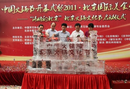 中國烹飪協(xié)會副會長劉秀軍,中國烹飪協(xié)會副會長、北京餐飲行業(yè)協(xié)會會長湯慶順,北京市商務(wù)委員副巡視員趙利宗等出席了開幕儀式。所謂冰火不容,現(xiàn)場卻以冰雕啟動剪彩儀式,火引冰薪、融化了原本屬于夏日的標志,火鍋突圍、人們的熱情讓會場頓時直達沸點。