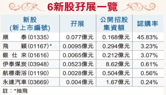 香港近期六只新股融資認購一覽