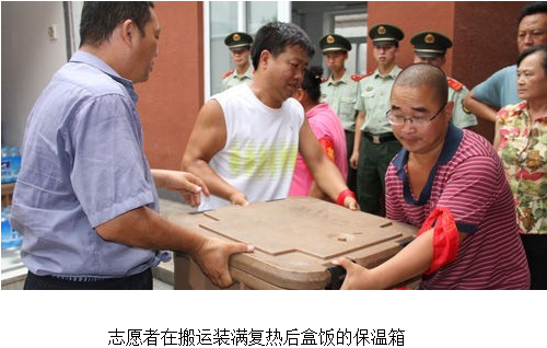 7月28日,兩輛車身懸掛著“湘鄂情和北京人民心連心”橫幅的冷餐車,載著2100盒復熱后的冷鏈盒飯和礦泉水,從青龍湖鎮駛出,一輛開往房山區青龍湖鎮北車營村災民臨時安置點,另一輛開往青龍湖鎮果各莊村和大馬村,把可口的熱飯熱菜送到“7.21”特大暴雨受災災民面前。這三個村子的上千災民終于結束了“一天兩頓方便面”的生活,災后第一次吃上了由北京湘鄂情股份有限公司提供的可口的免費熱飯熱菜。