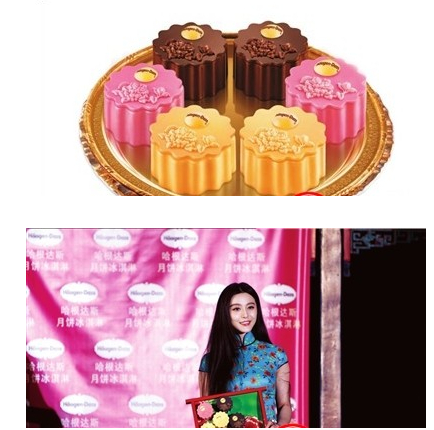 據(jù)悉2012年中秋,哈根達(dá)斯以“錦繡牡丹?如意中秋”為主題推出全新月餅冰淇淋系列。該系列月餅是吸取昆曲《牡丹亭》的靈感而制成,美好寓意“錦繡如意”,表達(dá)送禮臻意,將品牌一貫的時(shí)尚雅致與中國(guó)傳統(tǒng)的高雅文化完美演繹。今年的產(chǎn)品包裝在設(shè)計(jì)創(chuàng)意上,不但將昆曲服飾上的盤扣、蘇繡牡丹花等中國(guó)古典元素和時(shí)尚千鳥格以及歐式的花紋進(jìn)行搭配,而且在產(chǎn)品造型上融合了新意,創(chuàng)新如意牡丹圖紋月餅冰淇淋,傳遞著貴雅心意。