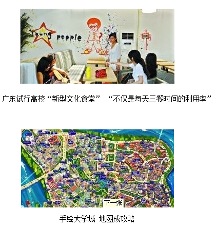 [摘要] 新學期開始,廣東高校食堂試行“轉型升級”不再是千篇一律的設計,也不僅是每天三餐時間的利用率,墻壁可以涂鴉,過道可以“走秀”,大量的空間可以展示設計品,進行“俱樂部式交流”。