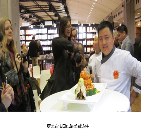 作為組委會(huì)應(yīng)邀唯一代表中國(guó)參加此次盛會(huì)的中國(guó)寧夏廚師吳志紅,向世界各地的來(lái)賓表演了中國(guó)清真美食,他克服了使用西餐用具及電磁爐不習(xí)慣的困難,在法國(guó)藍(lán)帶廚藝學(xué)院的學(xué)員配合下圓滿(mǎn)完成了這次表演,制作的翡翠魚(yú)花受到觀眾的熱烈歡迎,他以高超的技藝征服了世界各地的美食愛(ài)好者,受到了評(píng)委會(huì)主席愛(ài)德華?君度先生的高度評(píng)價(jià)。據(jù)悉,代表中國(guó)的美食圖書(shū)《舌尖上的中國(guó)》也獲得了這次大獎(jiǎng)賽的獎(jiǎng)項(xiàng)。