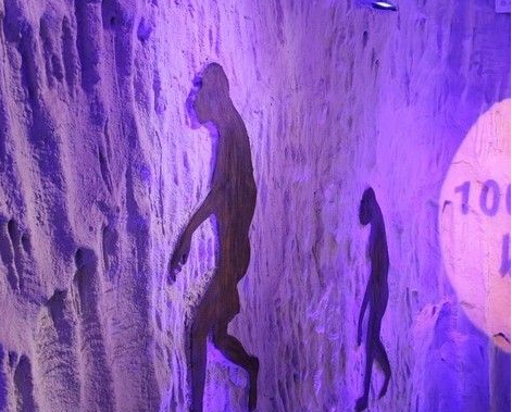于是老板突發靈感想出了這個店名,嘿嘿,介個是看湖南衛視采訪他家老板親口說滴,立馬就過來探了店面外觀看著猶如洞穴,入口昏暗,趕腳挺神秘滴,墻壁上有許多原始人影像,彷佛搭乘機器貓的時光穿梭機來到了原始社會,沿樓梯小心前行,猿人也漸漸站立起來,述說著人類進化過程……外圍環境很有氣勢!