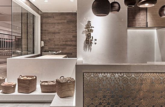 當然,我們今天要說的當然不是餃子的口味,而是喜鼎餃子的首家旗艦店,他們委托了來自上海的睿集設計來做空間設計,“希望能夠打破現有連鎖品牌固有的快餐化、大眾化品牌印記,創造與眾不同的體驗式餐飲休閑空間。”
