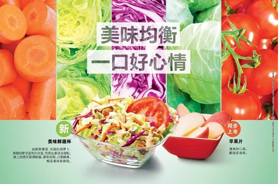 麥當勞店中宣傳圖片里,兒童餐部分只能看到玉米杯、牛奶搭配漢堡,是不會出現薯條和碳酸飲料的圖片的(當然,你家孩子要是拍桌子要吃,你也還是能點得到),這和他們從2013年開始的全球宣傳策略保持一致。和孩子互動的“麥當勞叔叔”是不能接觸產品、推薦產品,也是希望借此能夠對兒童膳食有所“管控”。今年5月28日開始,蘋果片在中國的北上廣深津五座城市推出,同期全國也會上市美味鮮蔬杯,雖然微信公眾號的推廣文章中,玩具仍然寫在最開頭,但緊接著就是這兩款新品,也預示著這個品牌今年在健康兒童餐上也許會有更多的動作。