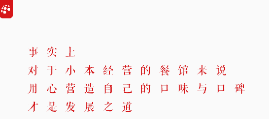好口碑的形成一向離不開自己家菜品的口味保證,小餐館拼不了高級營銷,如果連菜品口味都不追求的話,那基本就無望了。