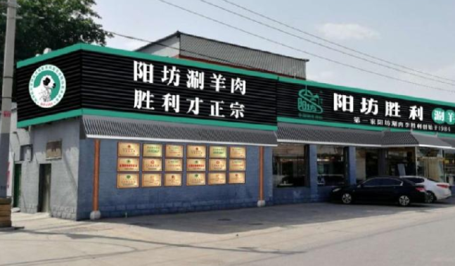 首先確定了陽坊鎮老店的門頭上的品牌故事:第一家陽坊涮羊肉由李勝利創始于1984,強調“陽坊涮羊肉,勝利才正宗”。